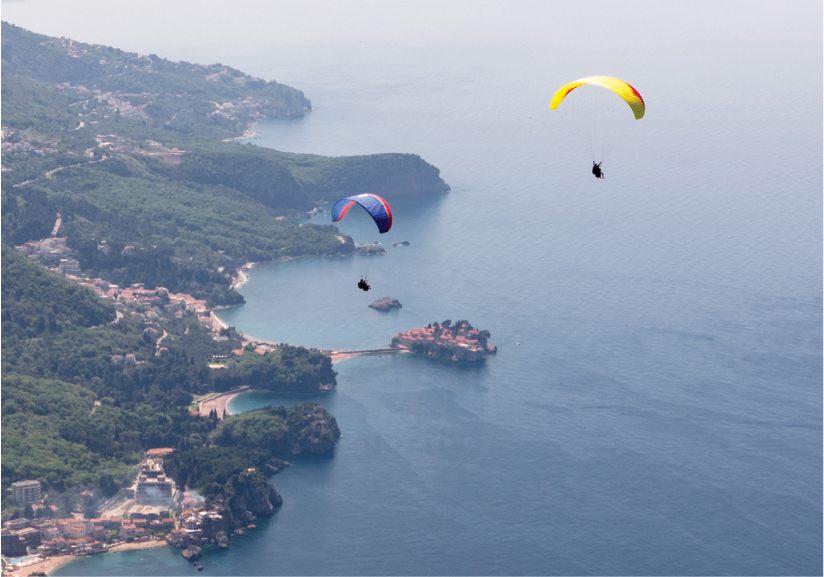 Take off from an altitude of 800 meters and enjoy a 15-20 minute tandem flight. The panoramic views of Budva Riviera from above are simply unmatched—an unforgettable perspective. -